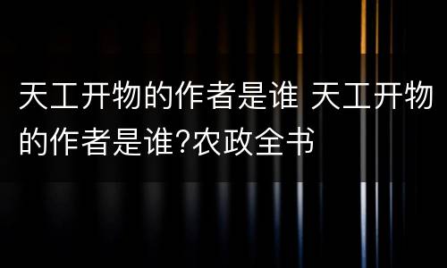 天工开物的作者是谁 天工开物的作者是谁?农政全书
